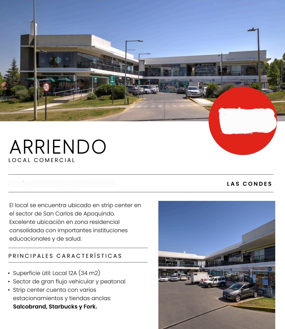 EXCELENTE LOCAL COMERCIAL EN ARRIENDO , PISO 2 ,34 MTS2. SAN CARLOS DE APOQUINDO.