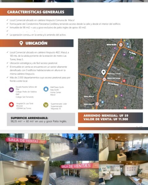 EXCELENTE LOCAL COMERCIAL EN VENTA 98.35 MTS2.METRO LAS TORRES , MACUL.